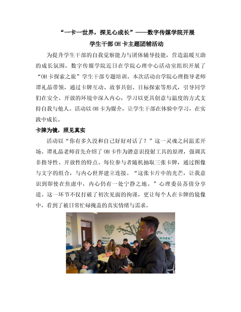 “一卡一世界,探见心成长”——数字传媒学院开展学生干部OH卡主题团辅活动