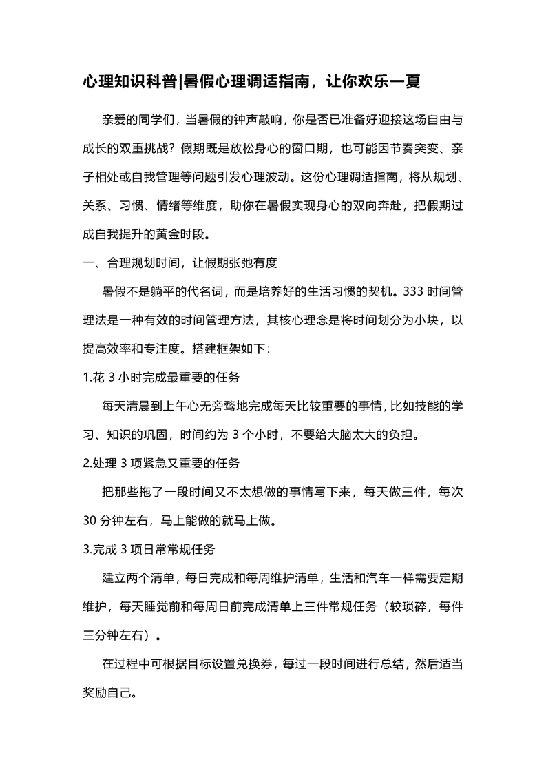 心理知识科普|暑假心理调适指南,让你欢乐一夏