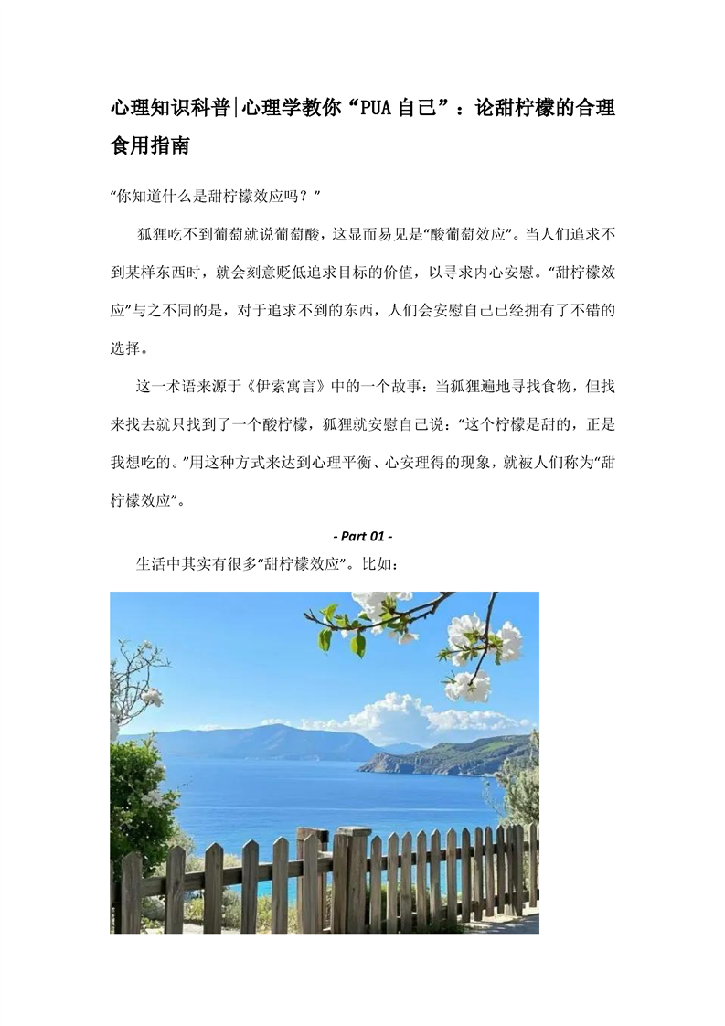 心理知识科普|心理学教你“PUA自己”:论甜柠檬的合理食用指南