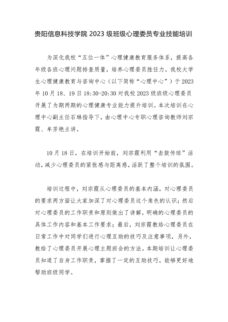pp电子官方网站2023级班级心理委员专业技能培训