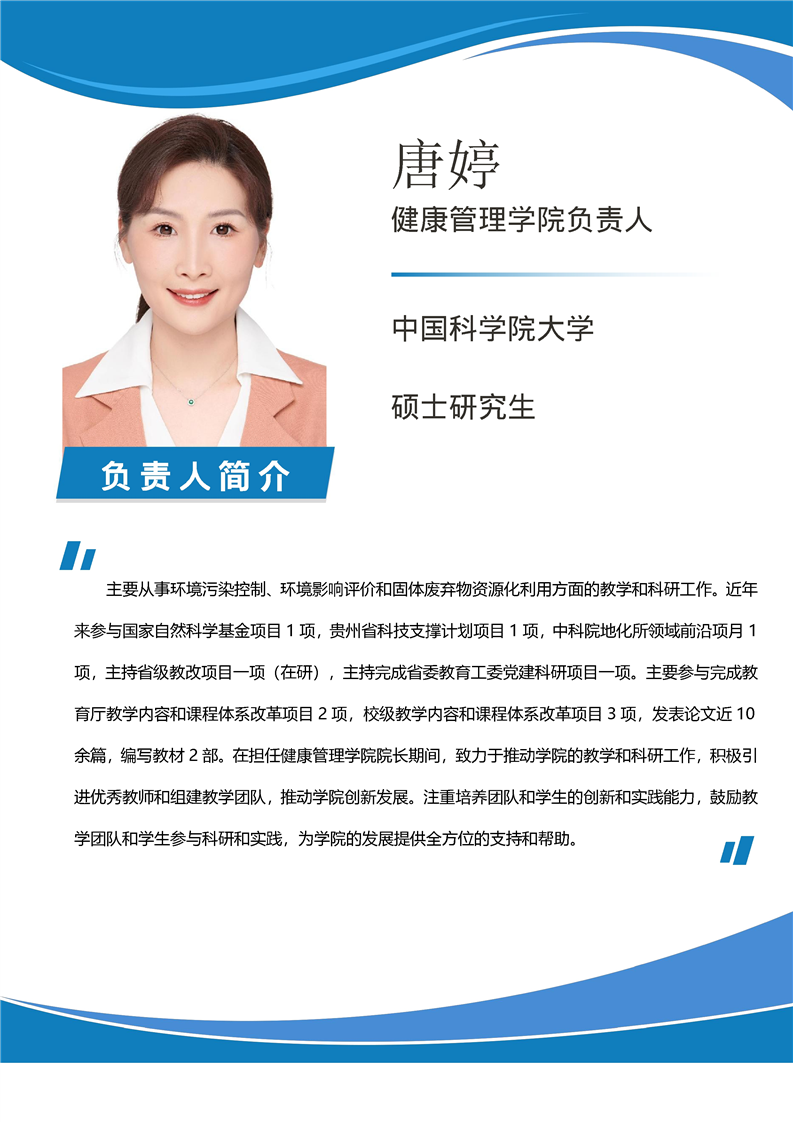 健康管理学院负责人唐婷简介