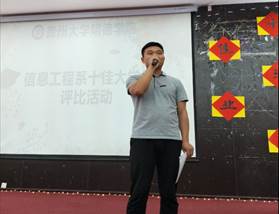 随着十一位毕业生精彩的分享后,信息系文艺团为全场带来了一段优美的舞姿,缓解了人们中午的疲惫。经过评委的认真评判,最终评选出了信息工程系十佳毕业生,并由金明辉副书记为他们颁奖。