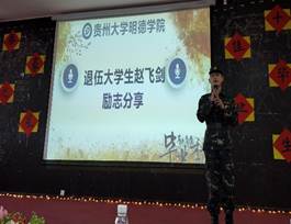 活动伊始,由金明辉副书记为本次活动致开幕词,为活动拉开了序幕,金书记强调:评选十佳毕业生是深入贯彻落实党的教育指导方针,同时也是对大学四年来优秀同学的一个肯定,各位同学需向他们看齐学习,望各位评委老师能评选出优秀的十佳毕业生。金书记的致词引起了同学们的沉思,全场响起了热烈的掌声。随后退伍大学生赵飞剑学长为我们带来励志分享,指明了明德男儿投身军旅的前进方向。