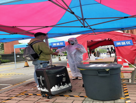 返校工作有序进行,排队等候的同学之间需间隔一米以上的距离等待。在烈日的阳光下,同学们严格按照一米原则等候,准备好需要的资料,待所有程序结束后进入校园。疫去花开,终于等到你们的带来。你们的到来将给信息系增添活力,校园也将回复往日的精彩。截止到2020年5月30日下午六点半,信息工程系共返校232位省内外的同学,信息工程系首批学生返校工作圆满完成。