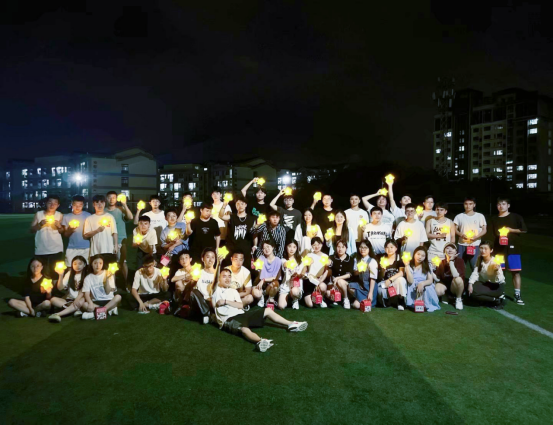 最后一个活动环节中辅导员葛老师给大家发放每人一颗星星彩灯,主持人张艺娴号召大家围成一个圆席地圈而坐,在大家手持挥舞的夜灯中,同学们合唱了《年少有为》、《北京东路的日子》、《挪威的森林》等歌曲,最后在活动总结中,辅导员葛老师说到“人生会有坦途平顺,也会有蜿蜒曲折,但要时刻相信作为优秀班集体的一员,你们是最棒的,是会发光的,愿这颗温暖明亮的小星星,照亮你们人生前行的路,驱散阴霾,走向明朗。愿你们都能做自己人生中最亮的星,不仅能闪耀自己,也能照亮他人”。同学们纷纷表示,通过本次趣味素拓联谊活动,使得同学们之间的凝聚力增强了,体悟到主动建立沟通的重要性,也感受到了作为优秀班级体一员的骄傲感。活动最后,大家合影留念。