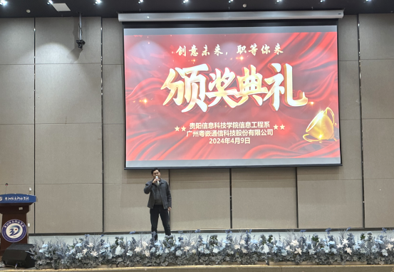 4月9日中午,信息工程系与广东粤嵌通信科技股份有限公司举办,主题为“创意未来,职等你来”的首届“粤嵌杯”简历设计大赛颁奖典礼,在学校图书馆二楼报告厅举行。参会的人员有广州粤嵌通信科技股份有限公司电子事业部总监万光海、校企合作经理曾淞、学校招生就业处处长曾林、信息工程系系主任朱万春、系党总支书记谢尧、系各教研室主任、2021级各辅导员老师以及2021级各班学生代表共计300余人参加了颁奖典礼。