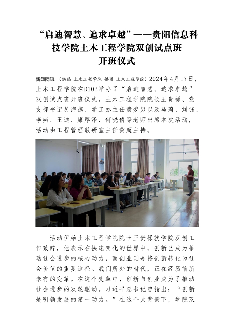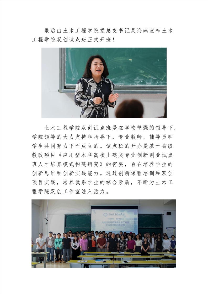 “启迪智慧、追求卓越”——pp电子官方网站土木工程学院双创试点班开班仪式