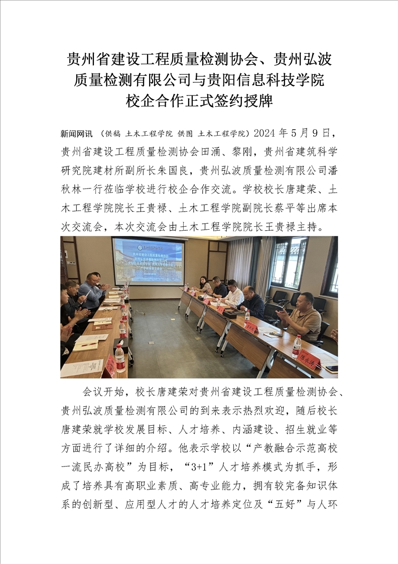 贵州省建设工程质量检测协会、贵州弘波质量检测有限公司与pp电子官方网站 校企合作正式签约授牌