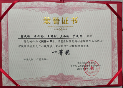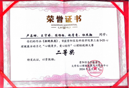 为丰富心理健康育人载体,培养大学生理性平和、积极向上的健康心态,提升心理素养和应对能力,让同学们用镜头捕捉每个人自身的闪光点和特点,用光圈绘出生命耀眼的光芒,以心理短视频的形式展现当代大学生积极、向上、乐观的心理状态,传播正能量,营造阳光健康的心理氛围。我院学生借此契机,积极组织各班同学自行组队拍摄录制短视频参加比赛,共收到14余部心理短视频,最终在全校“心镜漫步,爱心创造”心理短视频大赛中,我院荣获一等奖一项,二等奖一项。