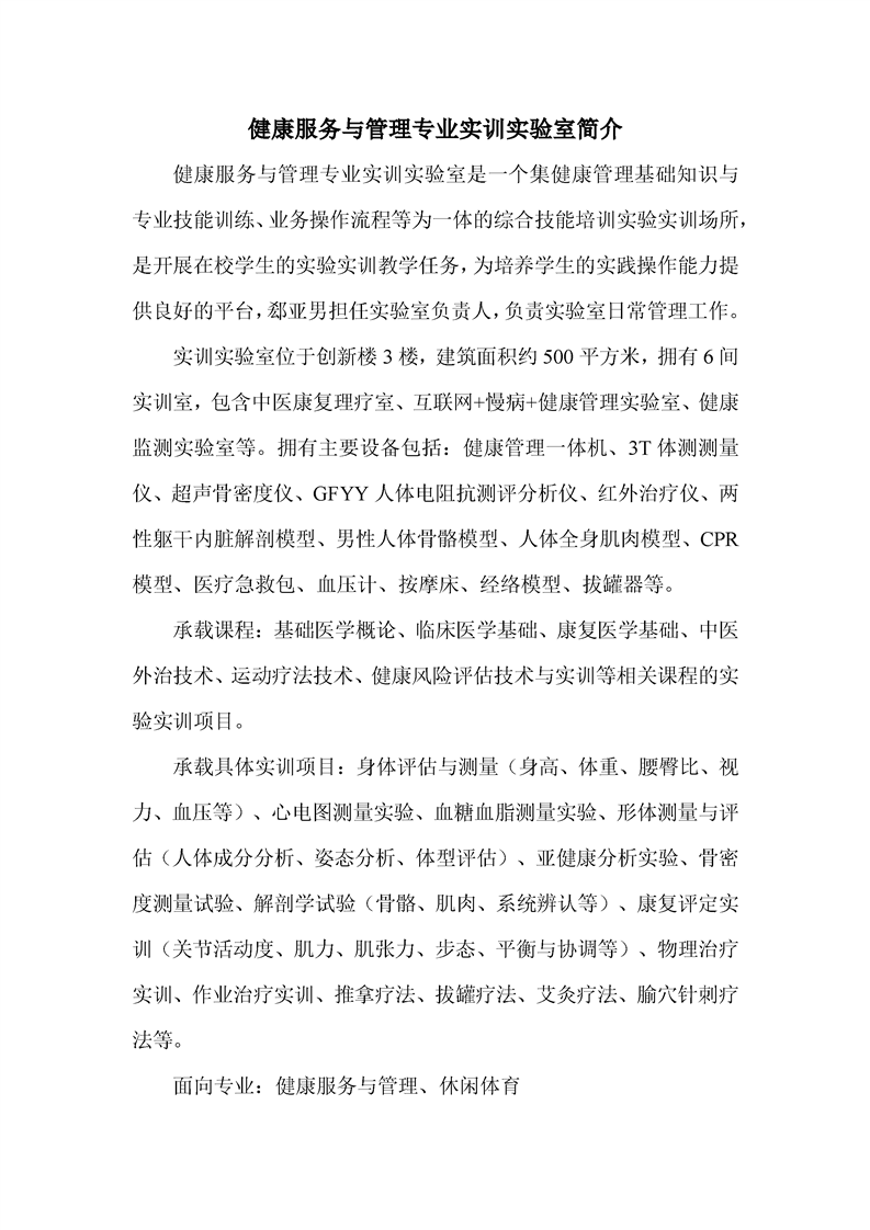 健康服务与管理专业实训实验室简介