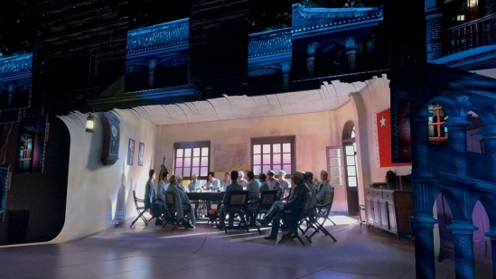 “红飘带”项目以“地球的红飘带”为建筑主题,以“高昂的旗帜,不绝的队伍”为核心主旨,以“一面红旗, 一盏马灯”作为视觉线索,由全域行浸数字演艺《红飘带.伟大征程》《红飘帶.多彩越》两大部分组成。通过科技展演成果和艺术表现形式,结合行进式展演、剧场式观演、沉浸式体验等多种形态,以“艺术+科技”为媒介,展现长征的完整叙事。生动还原伟大征程的全景视角,使观众能够身临其境地感受到那段峥嵘岁月的历史厚重,引发观众内心共鸣,升华信仰之心,党员教师们不仅可以重温革命先烈的丰功伟绩,也能深刻理解传承红色基因、担当时代使命的重要性。