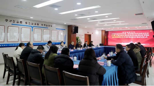 为全面贯彻习近平总书记关于新时代人才工作的新理念、新战略、新举措,深入落实《重庆市人民政府 贵州省人民政府深化战略合作框架协议》精神,充分发挥万盛经开区作为渝黔合作先行示范区的引领示范作用和地方产业资源优势,为毕业生提供充分实习就业机会,助力学校高质量发展,2024年12月26日,学校校长(首席治校专家)唐建荣教授、校党委委员、纪委书记黄晓儒等一行六人前往重庆,在重庆市万盛经济技术开发区工业园区的五楼会议室就深化渝黔区域合作、共筑政校合作新高度进行深入交流并签订政校合作框架协议,万盛经开区党工委委员、管委会副主任涂山全、平山园区党工委书记、管委会主任万春波管委会办公室、科技局、经信局、人社局及福耀玻璃、冠宇电池等十余家重点企业负责人出席会议,会议由万盛经开区平山园区管委会常务副主任罗毅主持。