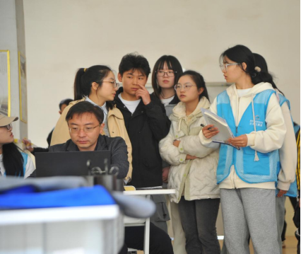 活动期间,志愿者们密切关注选手需求,及时补充短缺材料,认真维持现场秩序,后勤志愿者也为选手提供饮用水等物资保障。加载测试中,有的志愿者在入口引导选手有序入场,有的在比赛区域协助工作人员进行模型称重、加载等操作,还有的处理突发状况,以保障活动顺利推进。