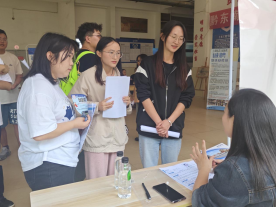 招聘会现场,各企业展位前挤满了前来咨询和投递简历的毕业生。他们手持精心准备的简历,主动与企业招聘人员交流,详细了解岗位要求、薪资待遇、职业发展路径等信息。贵州九城房地产开发(集团)有限公司招聘负责人介绍道:“我们此次带来了多个涵盖项目管理、建筑施工、项目策划、销售等方向的岗位,非常期待吸纳土木工程学院的优秀学子,为企业发展注入新活力。”贵州一路砼行混凝土技术服务有限公司的工作人员则表示:“学院毕业生专业基础扎实、实践能力突出,与我们的岗位需求高度契合,希望能与学院建立长期稳定的人才输送合作关系。”