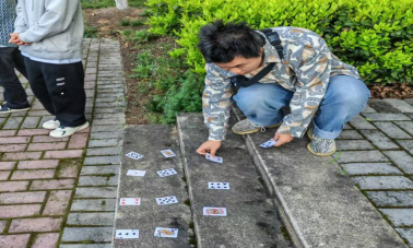 设置过程小游戏,同学们在欢声笑语中放松心情,其中最受青睐的是“谁是大小王”扑克游戏,通过扑克牌的点数和大小王牌进行角逐,点数小的接受游戏惩罚。