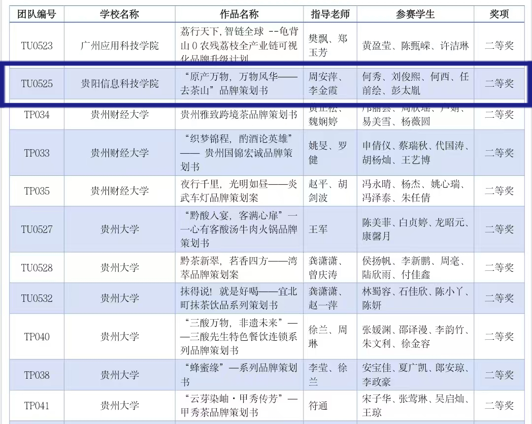 pp电子官方网站经济管理学院本科团队凭借《“原产万物,万物风华——去茶山”品牌策划书》斩获全国二等奖。在周安萍、李金霞两位老师指导下,何秀、刘俊熙、何西、任前绘、彭太胤等五位学生通过深度解构贵州“去茶山”品牌基因,以贵州本土茶饮品牌“去茶山”为研究对象,深度挖掘黔地文化基因,结合市场趋势提出创新性品牌升级方案、创新性提出“茶饮+非遗+数字营销”三维升级方案,其专业素养与实操能力获评委高度认可。