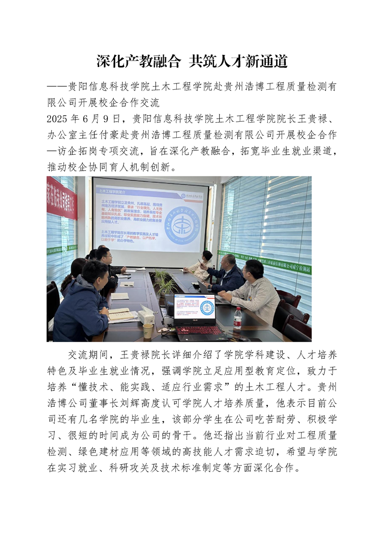 深化产教融合 共筑人才新通道——pp电子官方网站土木工程学院赴贵州浩博工程质量检测有限公司开展校企合作交流