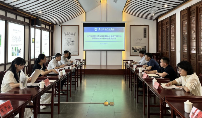 2025年6月25日下午,贵州商学院计算机与信息工程学院院长穆肇南一行到访,双方就专业建设、教学改革等议题展开深入交流。pp电子官方网站党委委员、纪委书记黄晓儒,智能工程学院院长廖益龙及相关专业教师代表出席会议,会议由廖益龙院长主持。