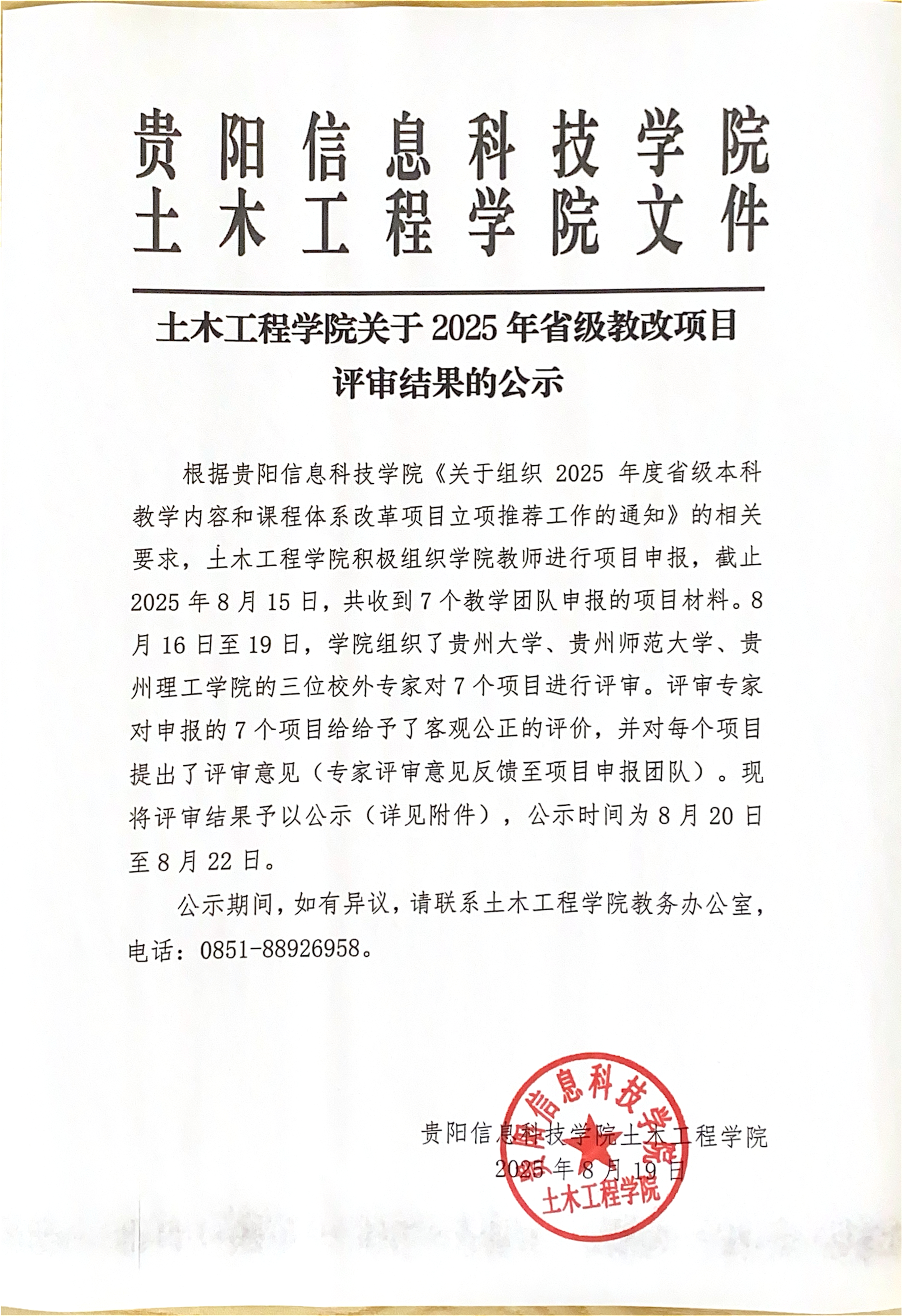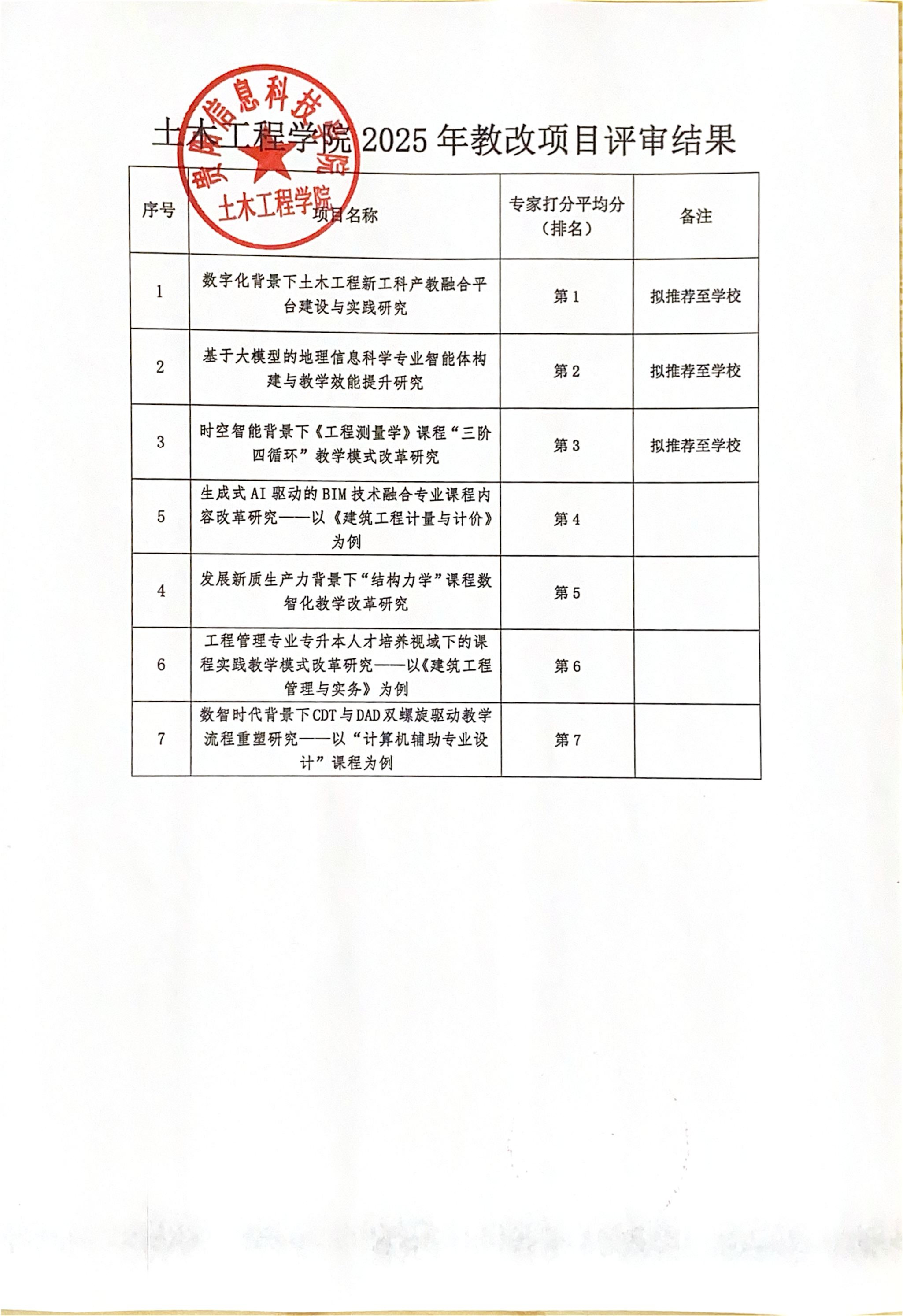 土木工程学院关于2025年省级教改项目评审结果的公示