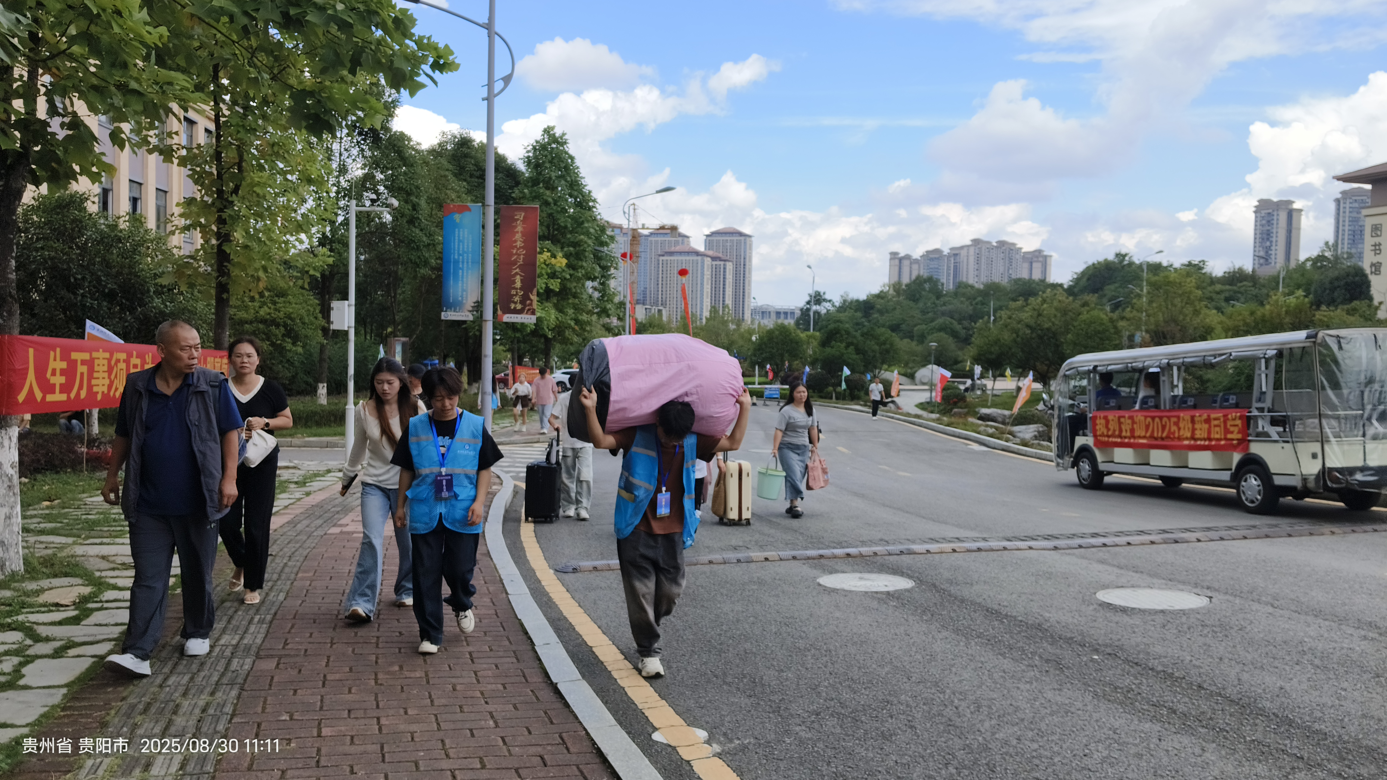 1.“志愿者”精准对接:从学校入口到报到点、宿舍楼下,学院各关键节点均配备三名以上志愿者。他们不仅是新生熟悉校园环境的“引路人”,更主动帮新生搬运行李,用贴心服务切实缓解新生长途奔波后的疲惫。