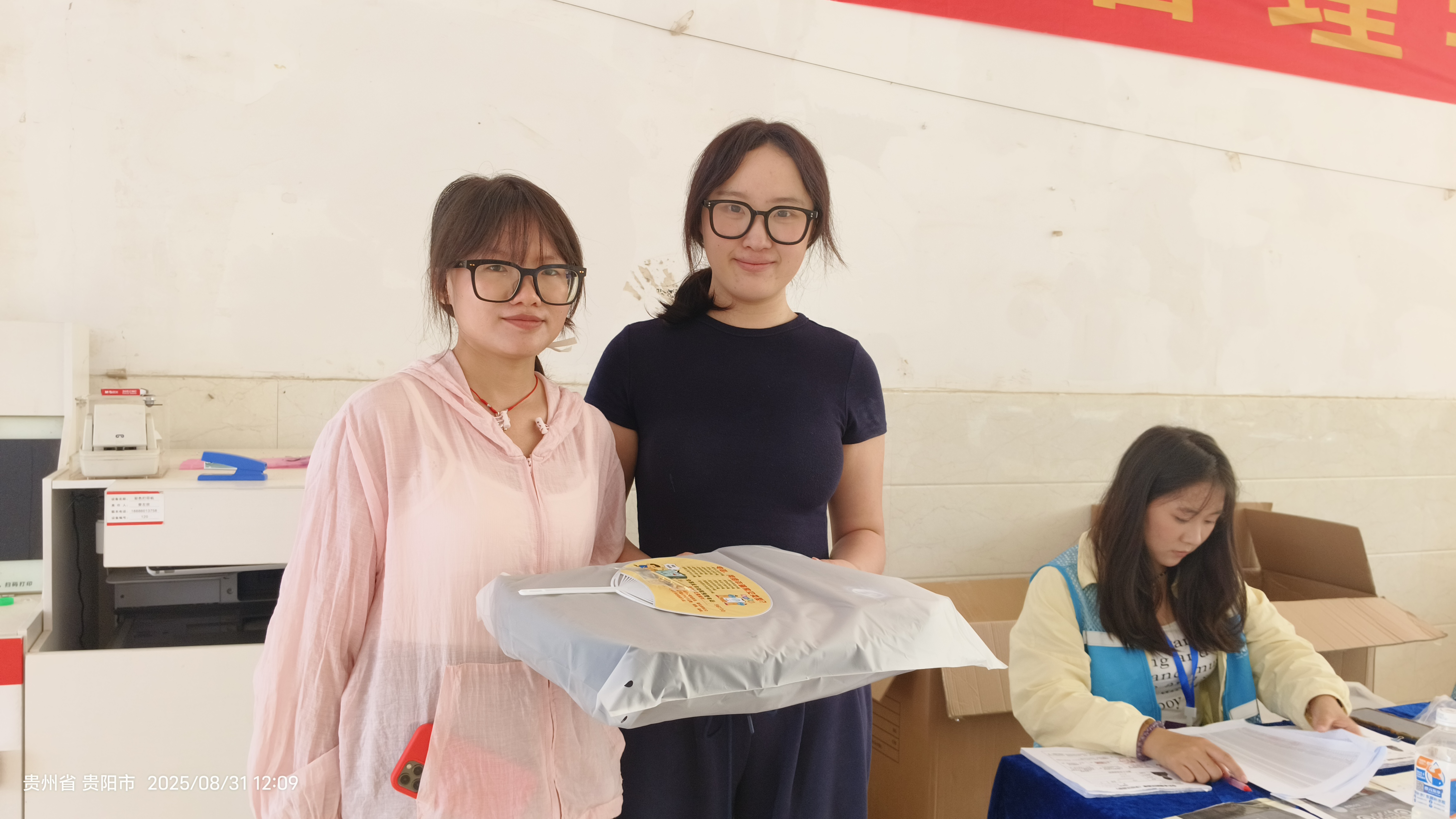 2.“梦想续航”定制迎新礼包:学校为每位专升本新生精心准备了专属迎新礼包,内含实用书包、象征身份认同的校徽,更贴心搭配印有防诈骗知识的“暖心扇”——既为新生驱散暑热,也将安全提醒融入细节,让每份礼物都承载着学校的欢迎之意与细致关怀。