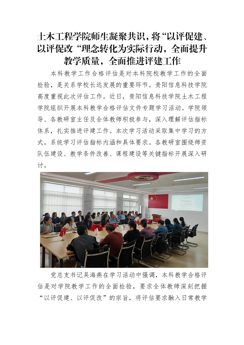 土木工程学院师生凝聚共识,将“以评促建、以评促改“理念转化为实际行动,全面提升教学质量,全面推进评建工作