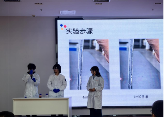 比赛中,面对来自全省的各路强队,我院参赛选手沉着冷静、稳定发挥。在实验展演汇演环节,团队成员运用娴熟的实验操作技能,幽默风趣又不失科学严谨的语言表达,将复杂的科学原理转化为科普作品,生动形象地展示了整个实验过程,赢得了评委和观众的广泛好评。