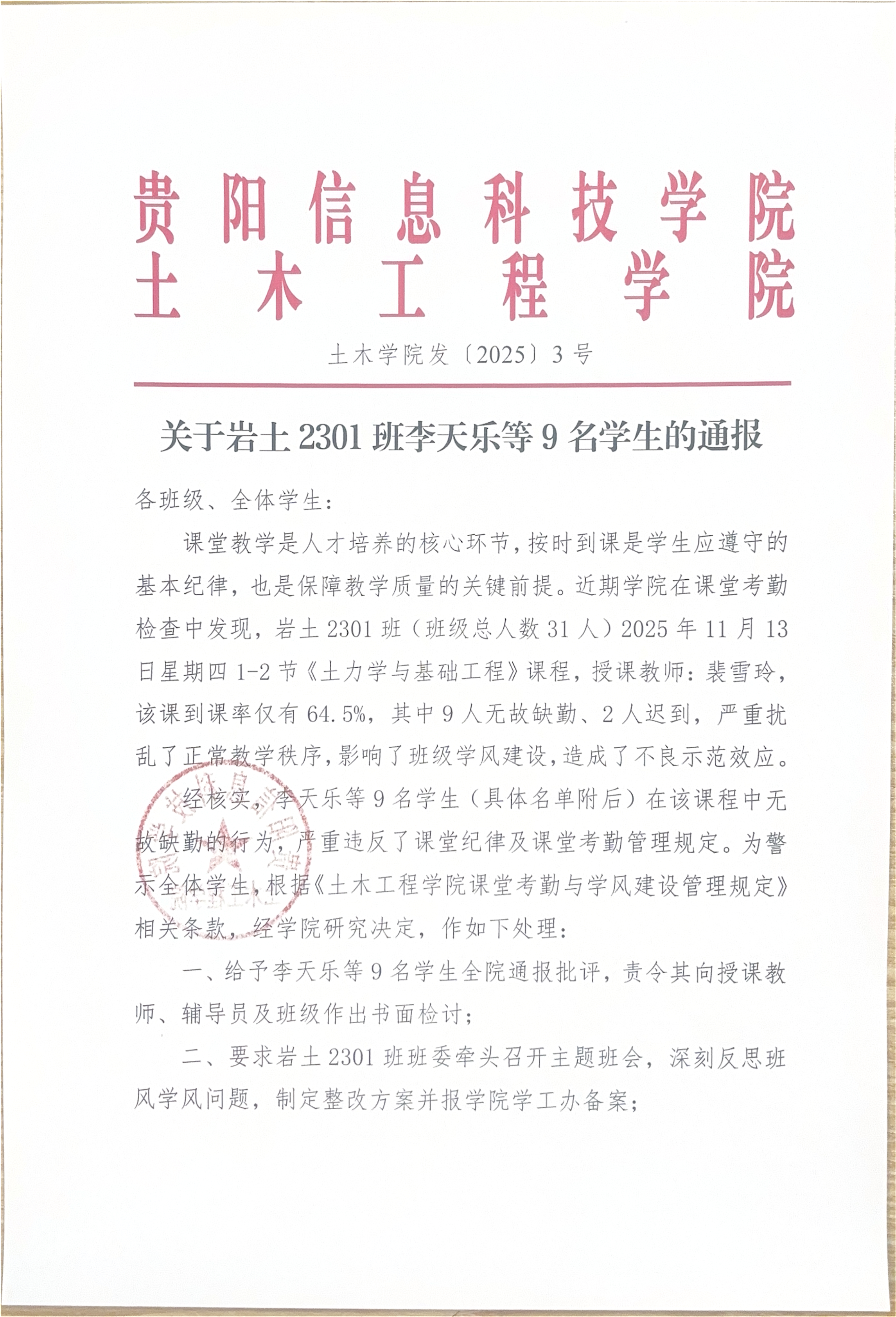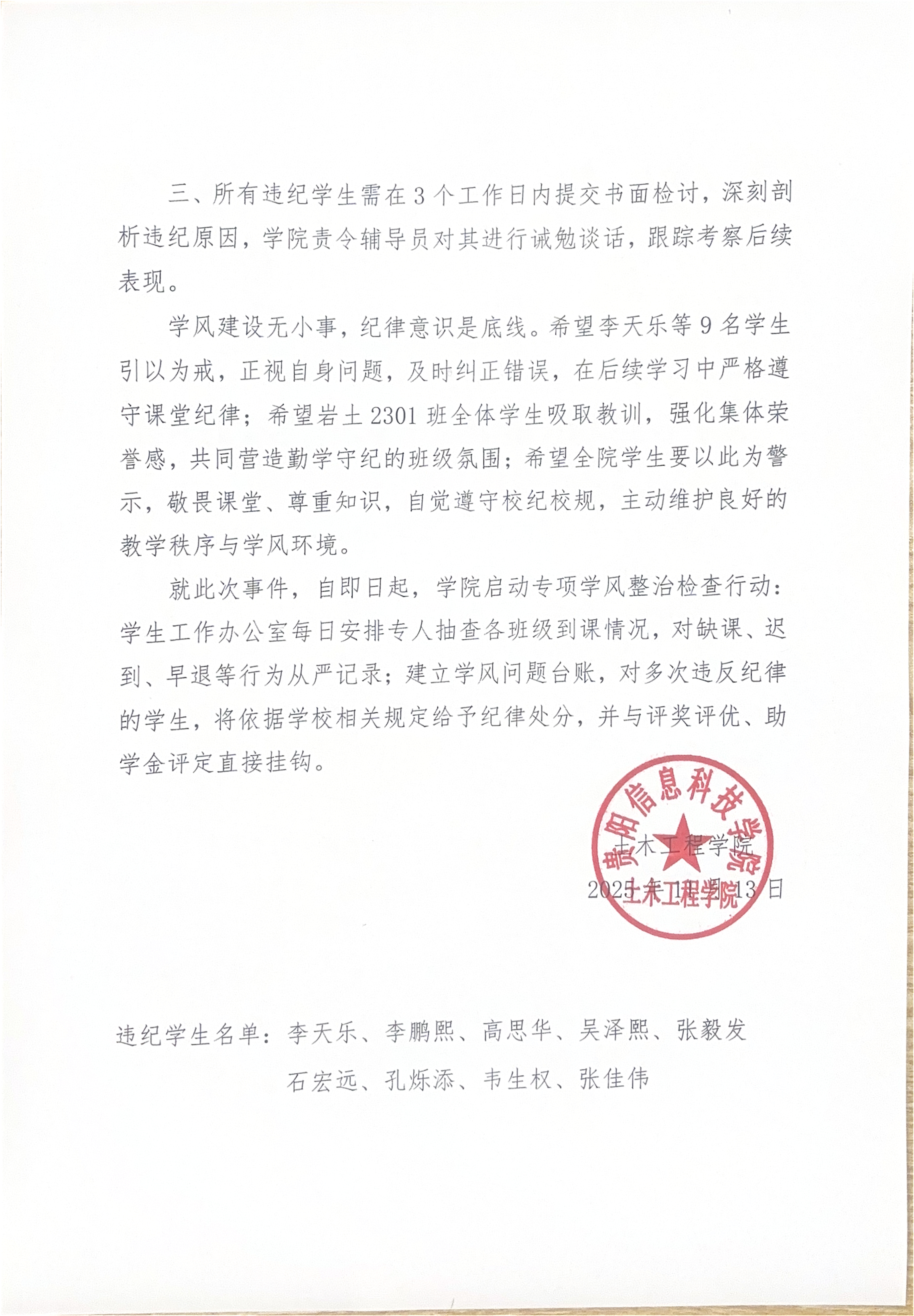 pp电子官方网站土木工程学院关于岩土2301班李天乐等9名学生的通报