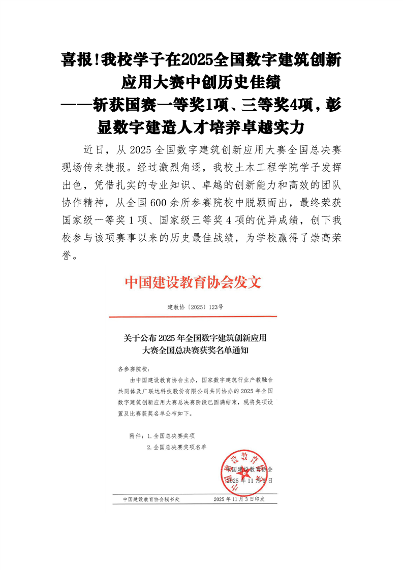 喜报!pp电子学子在2025全国数字建筑创新应用大赛中创历史佳绩 ——斩获国赛一等奖1项、三等奖4项,彰显数字建造人才培养卓越实力