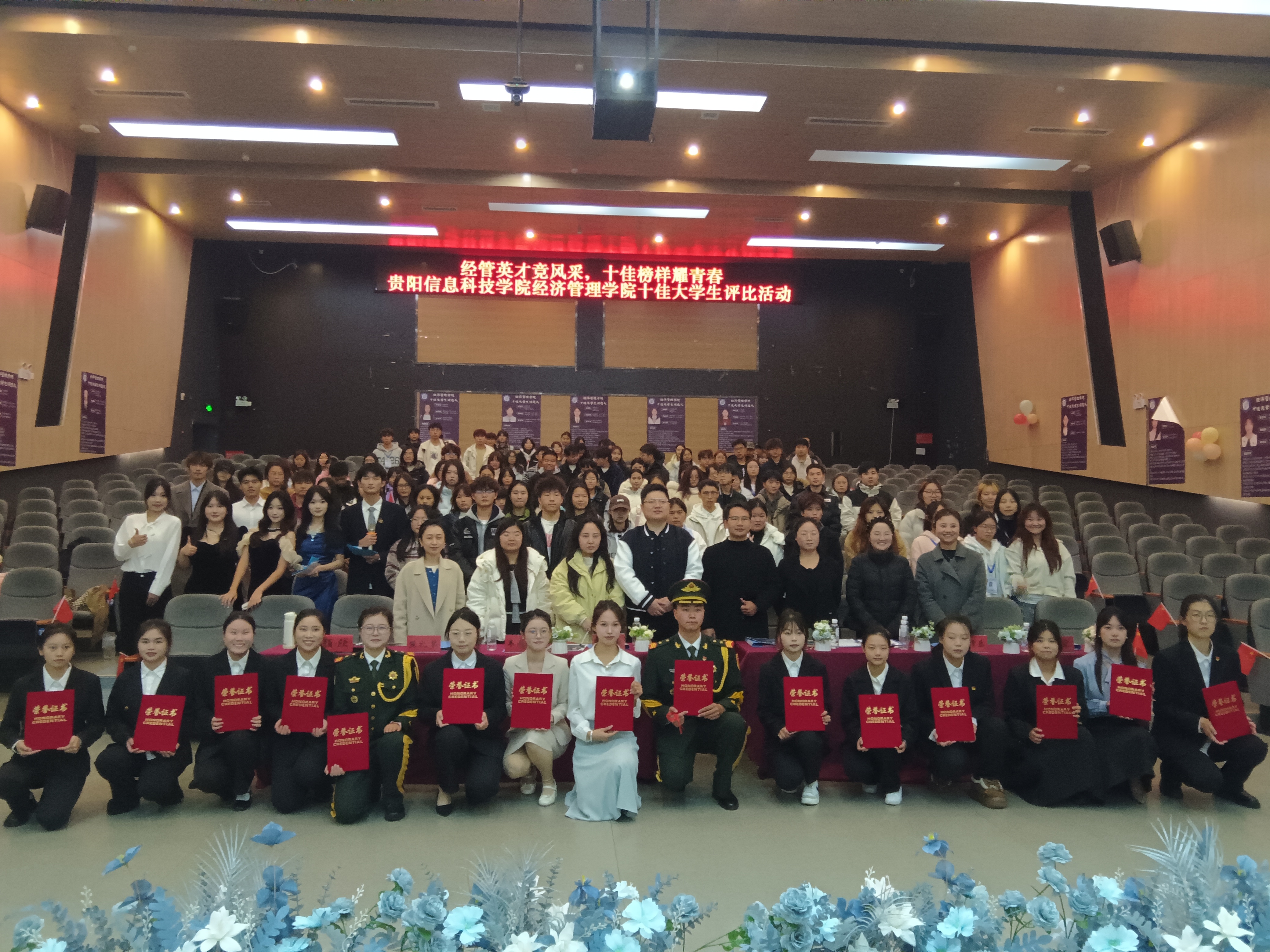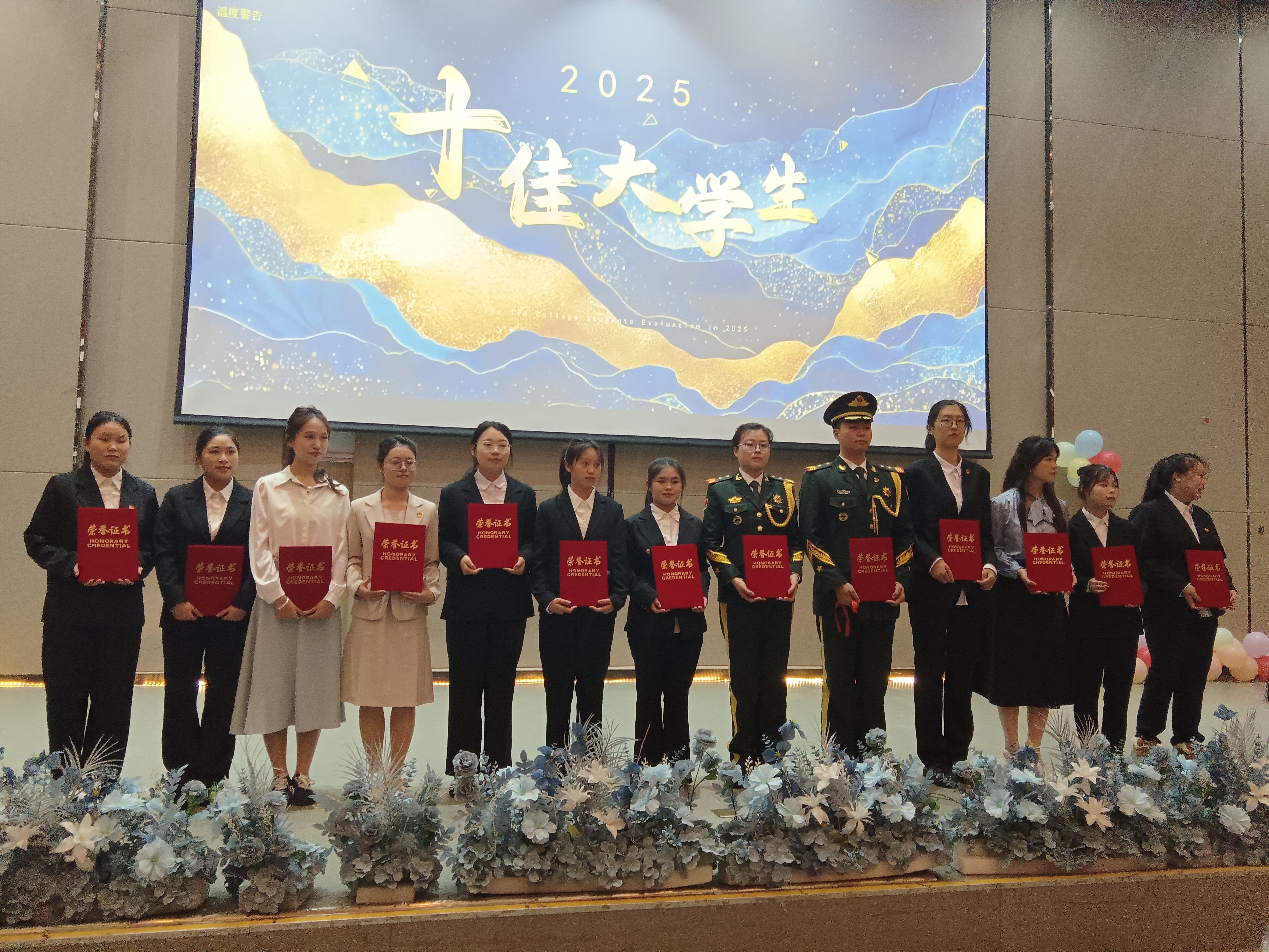 经评审团从学业成绩、学科竞赛、社会实践、品德表现等多维度综合评定,商书径、汤鑫鑫、黄相群、李籽臻、莫文慧、宋祖珍、吴优、王烨帆、许苗苗、姜红萍等十位同学脱颖而出,荣获“十佳大学生”荣誉称号。