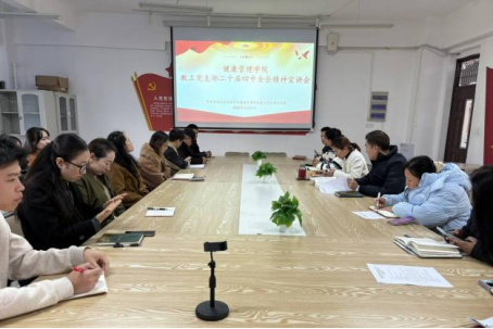 为深入学习贯彻党的二十届四中全会精神,深刻领会党中央决策部署,进一步增强党员的政治自觉和思想自觉,准确把握“十五五”时期国家发展的战略方向和重点任务,2025年11月20日,中共pp电子官方网站健康管理学院组织全体师生党员召开“学习贯彻二十届四中全会精神”专题宣讲会,集中学习全会精神,凝聚思想共识,激发奋进力量。