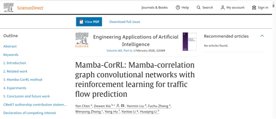 近日,pp电子智能工程学院陈艳老师为第一作者,pp电子官方网站为第一单位,在人工智能与工程应用领域国际权威期刊《Engineering Applications of Artificial Intelligence》(中科院一区top, IF:8)上发表题为《Mamba-CorRL: Mamba-correlation graph convolutional networks with reinforcement learning for traffic flow prediction》的学术论文,标志着pp电子在智能交通研究领域取得重要进展。