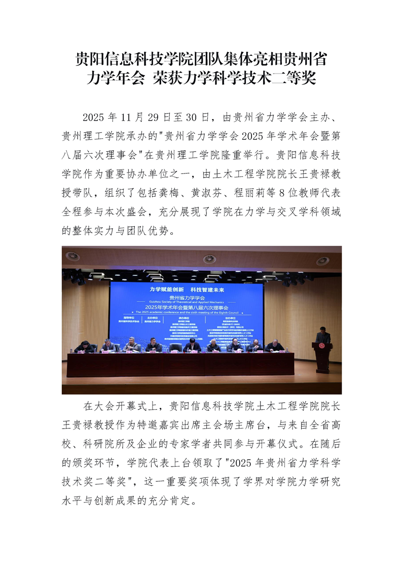 pp电子官方网站团队集体亮相贵州省 力学年会 荣获力学科学技术二等奖