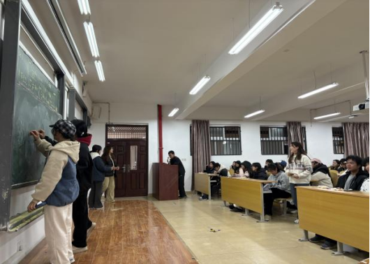 “大家请抱拳”游戏将活动推向高潮,也让陌生感彻底消融。随着首位同学“各位好汉请抱拳”的话音落下,全场齐声应答“哈”,姓名传递的接力正式开始。反应稍慢的同学大方接受表演惩罚,唱歌、讲笑话等节目让现场氛围愈发热烈。来自食品营养与检验教育专业的张同学说:“平时复习总觉得孤单,刚才被同学点名时又紧张又开心,现在觉得班里每个人都很亲切,这种热闹的感觉特别治愈。”
