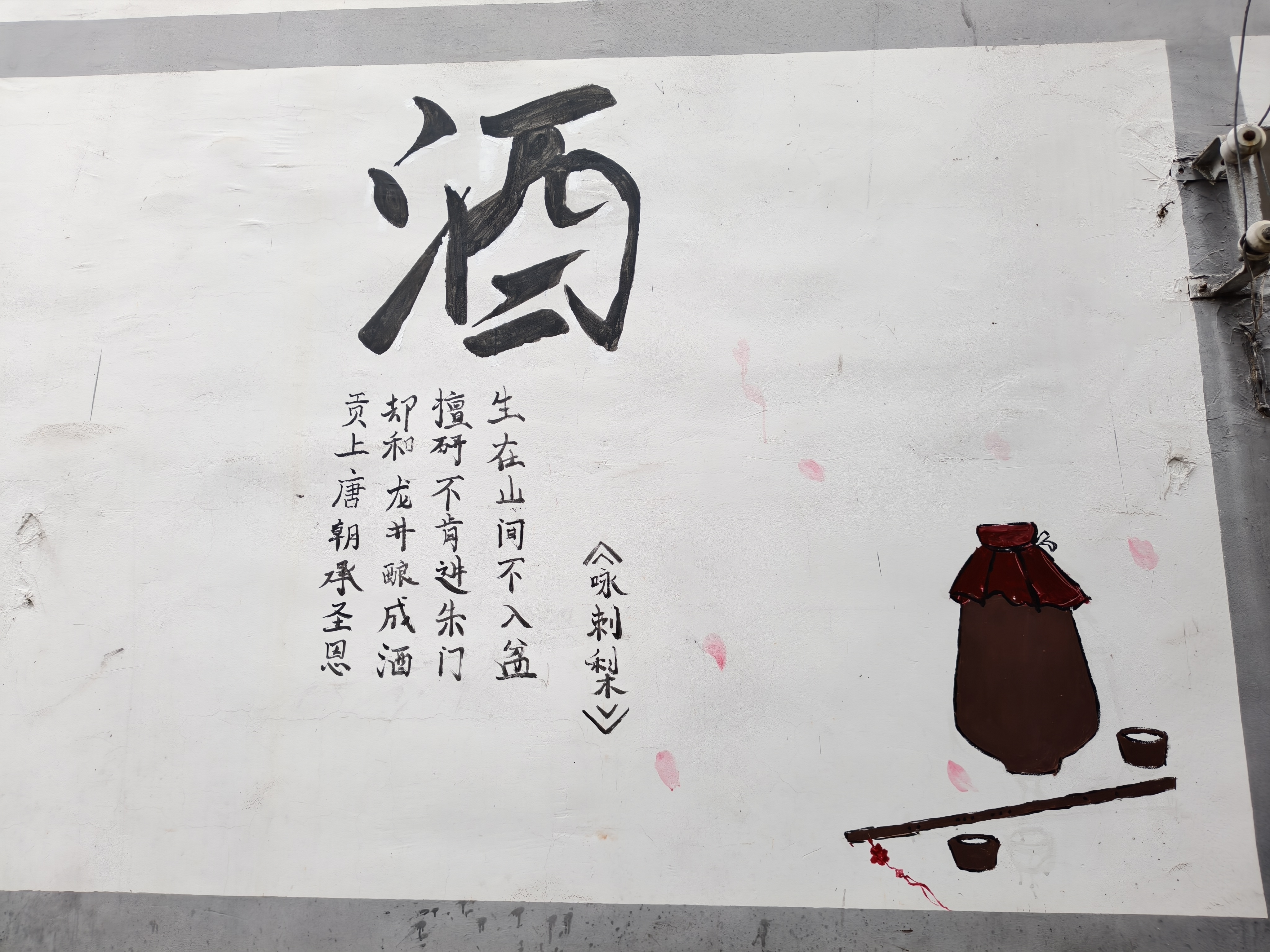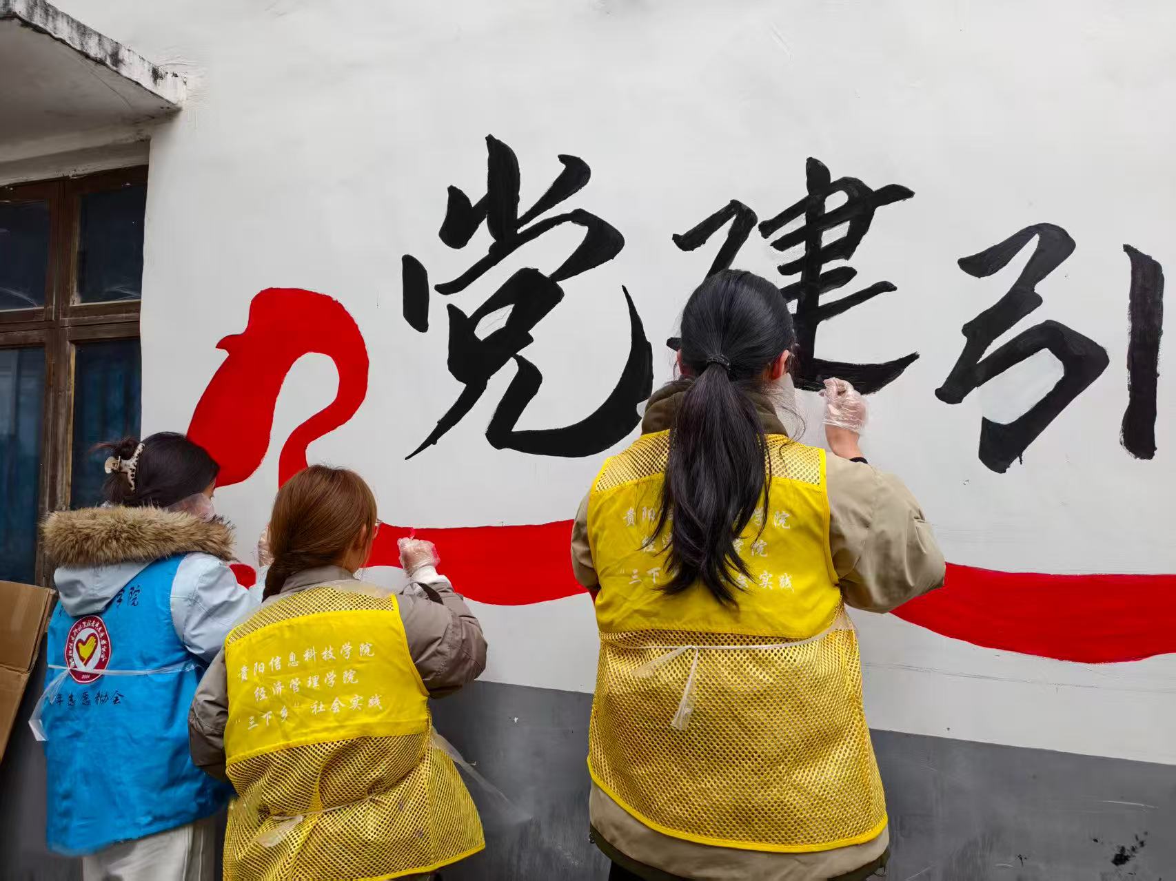 在墙绘活动现场,团员们充分发挥专业优势,紧密结合龙井村的自然风貌、民俗文化以及乡村振兴主题,精心构思绘画内容。一方面,龙井村拥有浓香醇厚的刺梨酒,它凝练了山野灵果的独特风味,是养生佳酿的经典典范。基于此,团员们立足乡村特色资源,以当地闻名的刺梨酒为创作灵感,生动描绘出刺梨采摘、酿酒工艺、酒文化传承等场景,将乡村产业特色与民俗文化巧妙融合,既彰显了乡村的独特魅力,也为当地特色产业宣传增添了活力。另一方面,团员们秉持党建引领乡村振兴的理念,努力绘就乡村发展新图景。他们以青春亮色作为主色调,将共青团的使命担当、团员的实践风采等元素融入画作之中,用鲜活的艺术语言传递团员的温度,让团学文化在乡村土壤中深深扎根,增强了团员与村民之间的情感纽带,凝聚起共建美好乡村的青春力量。