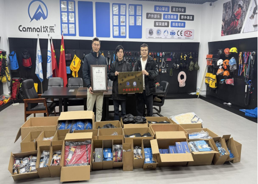 仪式现场,重庆宏科户外用品有限公司总经理冯红、市场营销部总监朱永红、生产研发部总监胡军军,中探巅峰董事长李峰、总经理王冠一、技术安全总监刘旻等企业嘉宾与校方团队共同见证坎乐(Camnal)户外器材交接。此次捐赠的器材涵盖高空安全带、上升器、下降器、止坠器等核心安全装备,将全面满足休闲体育专业实践教学与赛事训练的硬件需求,为学生专业技能提升提供坚实支撑。