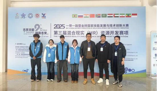 2025年12月14日,2025一带一路暨金砖国家技能发展与技术创新大赛第三届混合现实(MR)资源开发赛项全国总决赛在江西泰豪动漫职业学院圆满落幕。学校凭借跨专业融合的创新组队模式与扎实的技术实力,在激烈角逐中脱颖而出,在校长助理、数字传媒学院院长李锐锋及叶行高、杨顺建老师的悉心指导下,斩获本科组一等奖1项(由向昌换、周昊祺同学组成)、三等奖1项(由葛韩、王佳颖同学组成),以及职工组三等奖1项;领队教师李锐锋荣获“优秀指导教师”称号,学校因组织有力、表现突出,获颁“最佳组织奖”证书,充分彰显了学校应用型人才培养的丰硕成果与跨学科协同育人的显著成效。