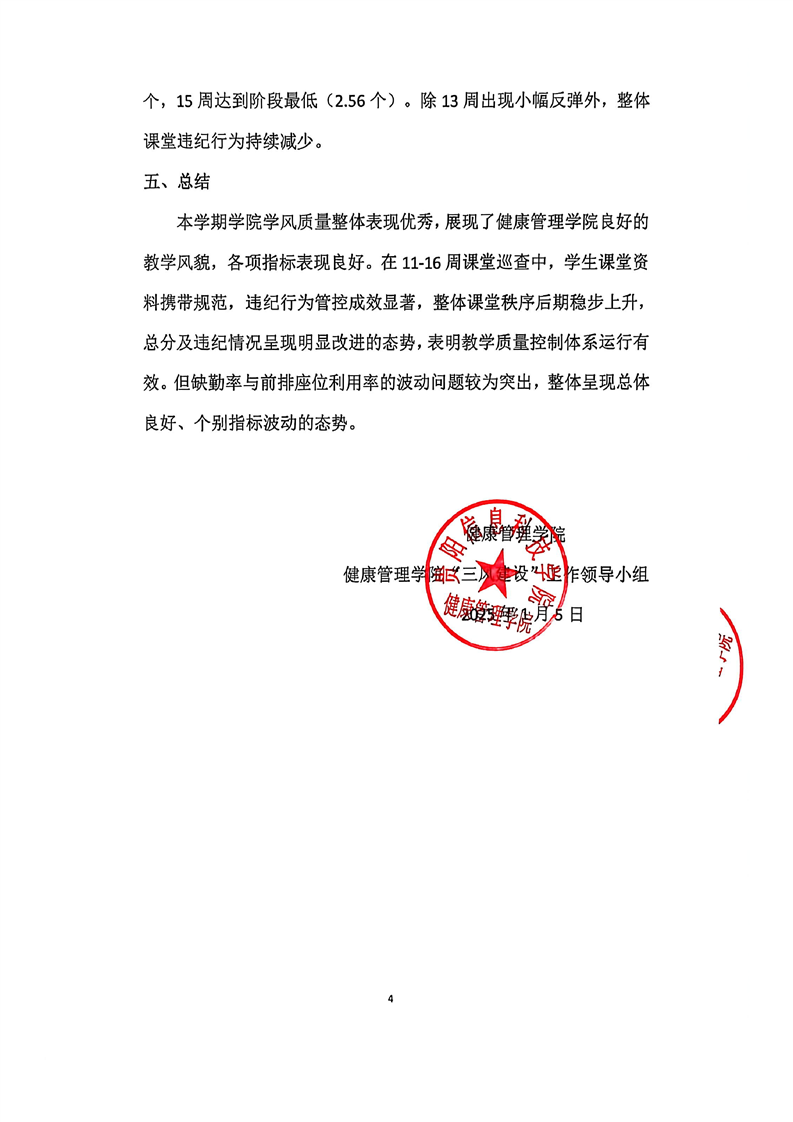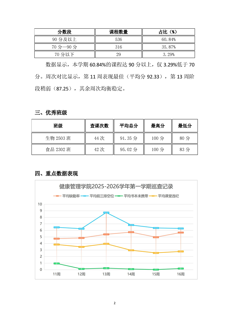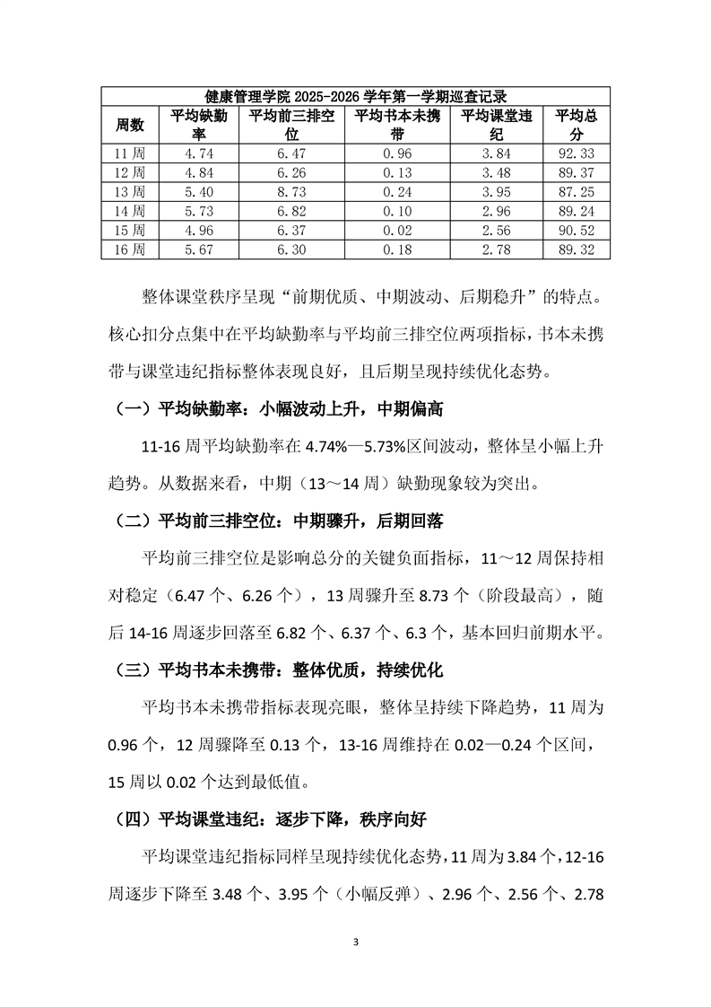 健康管理学院2025-2026学年第一学期学风巡查工作报告