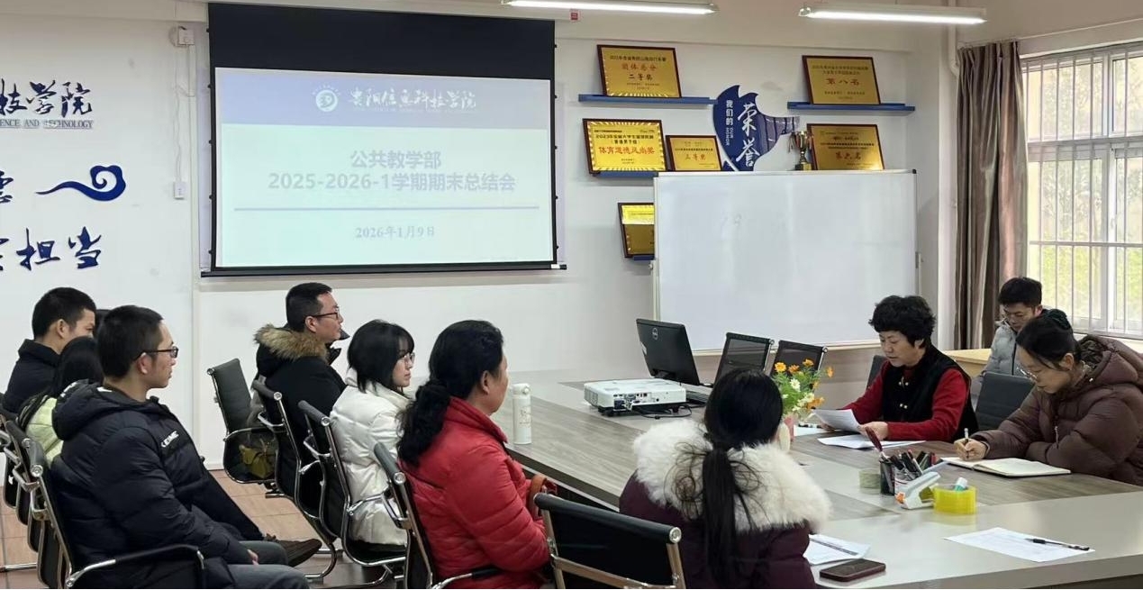 2026年1月9日中午,公共教学部在A211会议室召开2025-2026学年第一学期期末总结会议。会议由公共教学部部长唐丽华主持,部门全体教师参加。