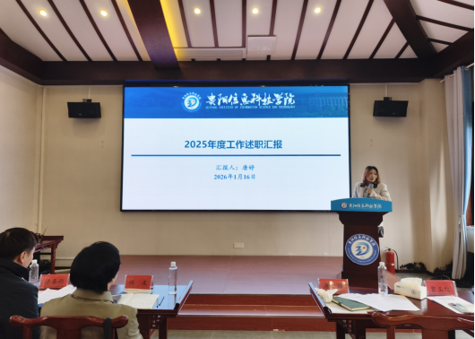 随后,唐婷院长作学院2025年度工作总结报告。报告从教学质量内涵提升、科研项目攻关突破、学科建设稳步推进、师资队伍结构优化、社会服务能力拓展等关键领域,系统梳理了学院全年各项事业发展取得的丰硕成果。唐婷院长强调,在肯定成绩的同时,更要清醒认识到学院发展中存在的短板与不足,未来学院将持续聚焦内涵建设,以更高标准深化教育教学改革,以更实举措提升核心竞争力,推动各项工作再上新台阶。