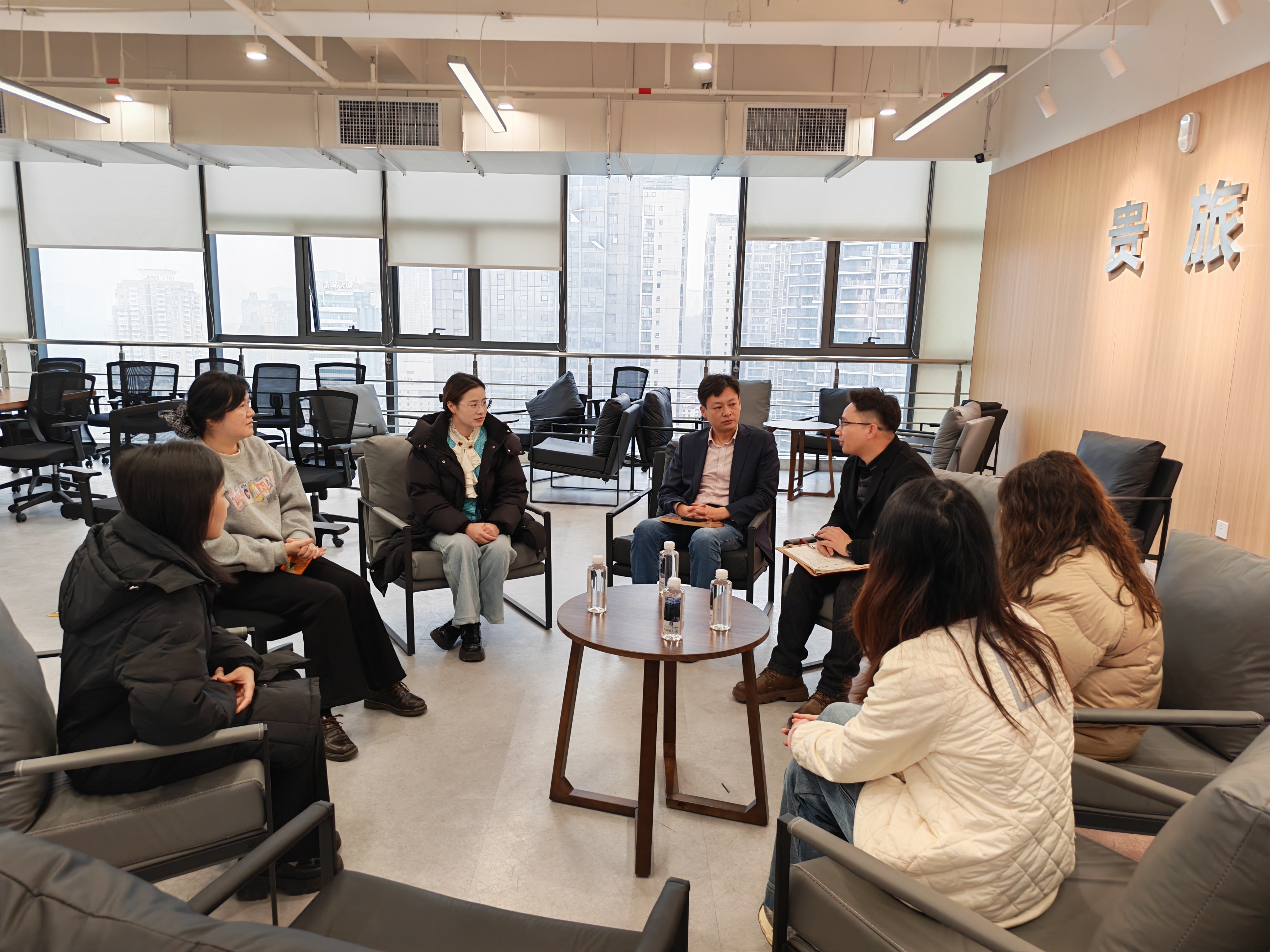 新闻网讯(供稿/供图 蔡朝笛)为落实高校访企拓岗促就业专项行动要求,深化产教融合与校企协同育人,以党建引领专业建设与行业需求精准对接,2026年1月16日,pp电子官方网站经济管理学院莫建活书记带队,率赵政老师及旅游管理专业陈美、蔡朝笛、敖青青三位教师,赴贵州贵旅国际旅行服务有限公司(以下简称“贵旅旅行公司”)开展专题交流。贵旅旅行公司人力资源处宋部长、公司主要负责人孙总热情接待,双方围绕人才培养、行业发展、党建联动及深度合作等议题深入探讨,达成多项共识。