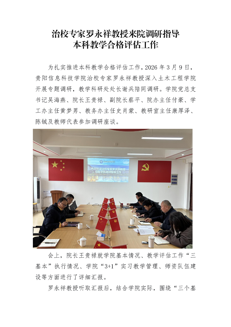 治校专家罗永祥教授来院调研指导本科教学合格评估工作