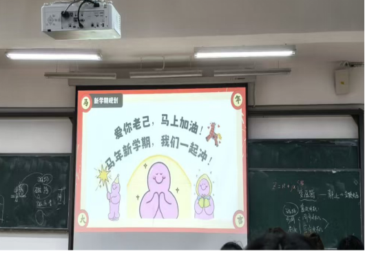 本次活动紧扣大学生开学适应核心需求,以“收心、安心、强心”为目标,从身心调节、习惯养成、目标规划多维度精准发力。辅导员结合“龙马精神”“一马当先”的马年寓意,引导同学们正视开学焦虑,针对假期生物钟紊乱、电子产品依赖等问题,传授实用收心妙招:教大家用“4-7-8”深呼吸法、情绪转移法调节焦虑;鼓励组建“手机自控小组”,以同伴互助培养线下兴趣,让身心快速回归校园节奏。