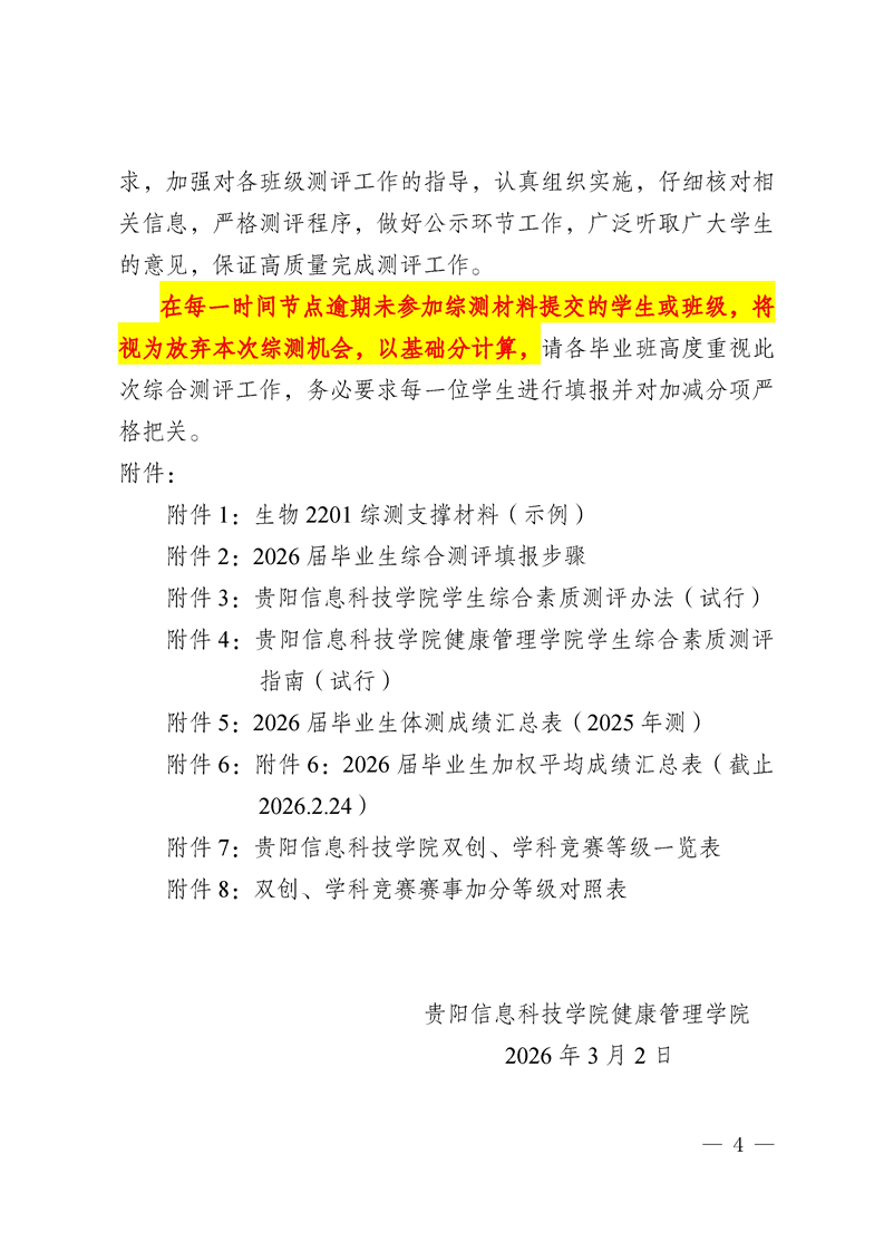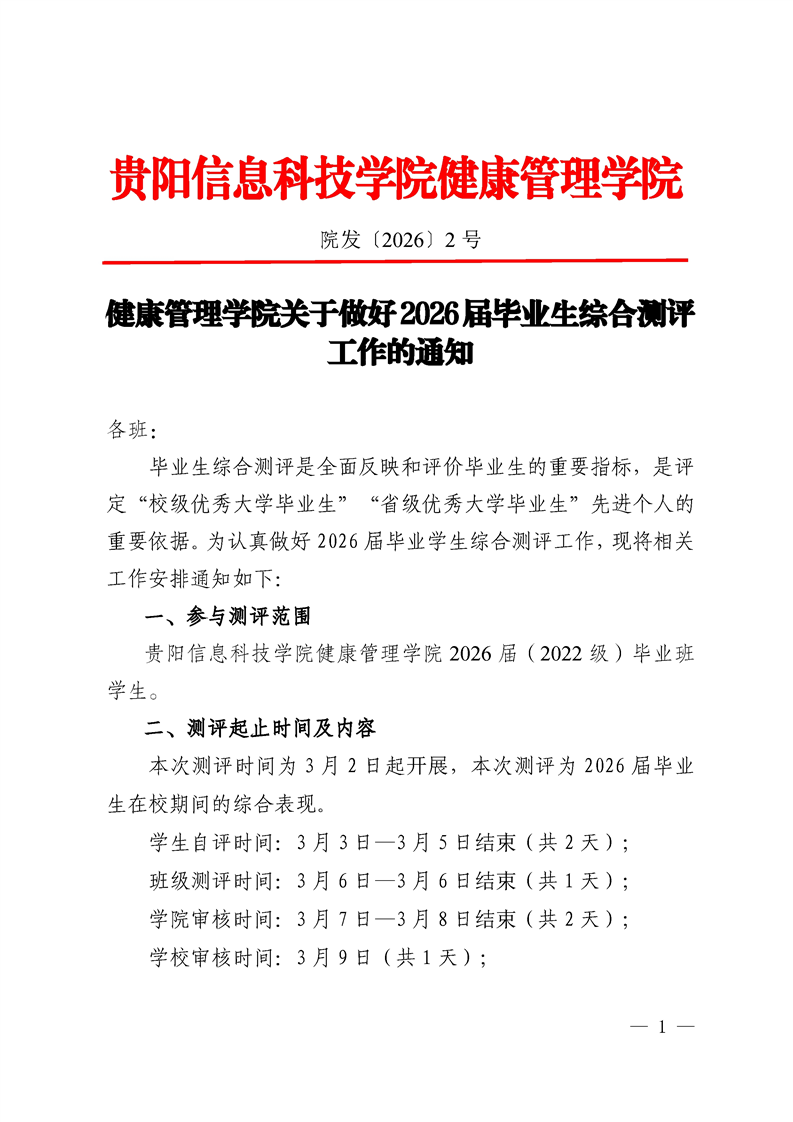 健康管理学院关于做好2026届毕业生综合测评工作的通知