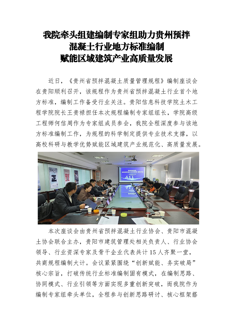 我院牵头组建编制专家组助力贵州预拌 混凝土行业地方标准编制 赋能区域建筑产业高质量发展
