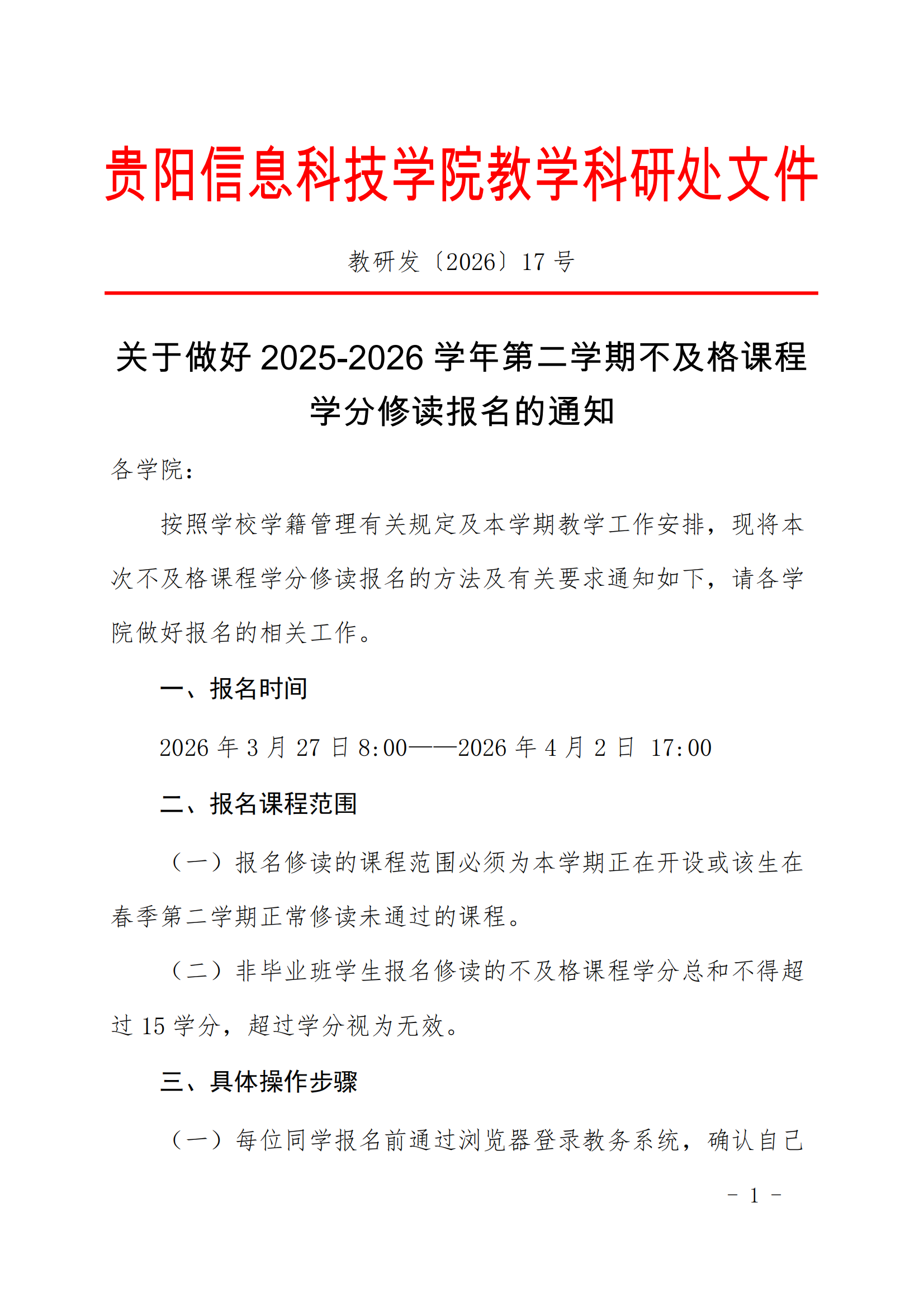 关于做好2025-2026学年第二学期不及格课程学分修读报名的通知