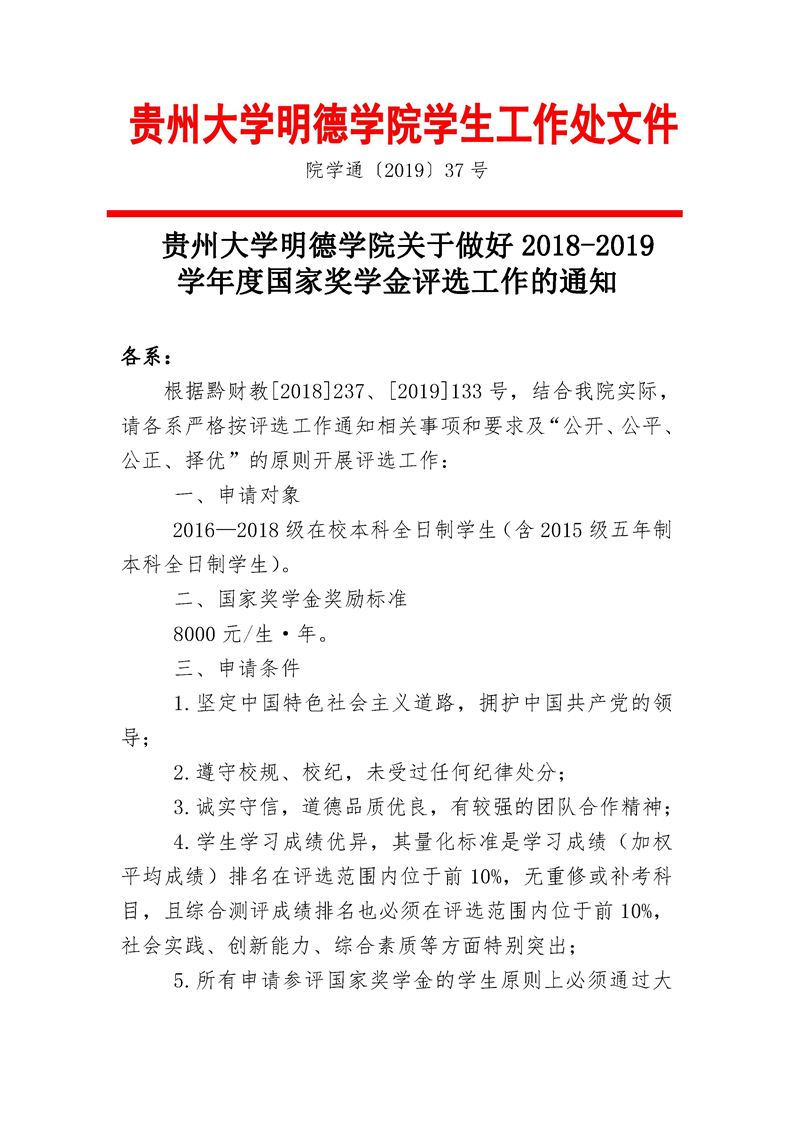 附件一:2018-2019学年度贵州大学明德学院国家奖学金名额分配表.xls