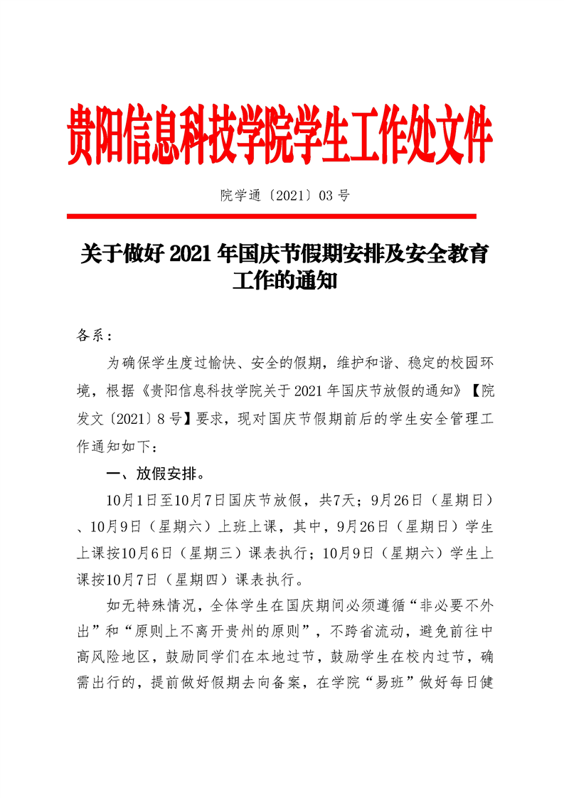 pp电子官方网站关于做好2021年国庆节假期安排及安全教育工作的通知