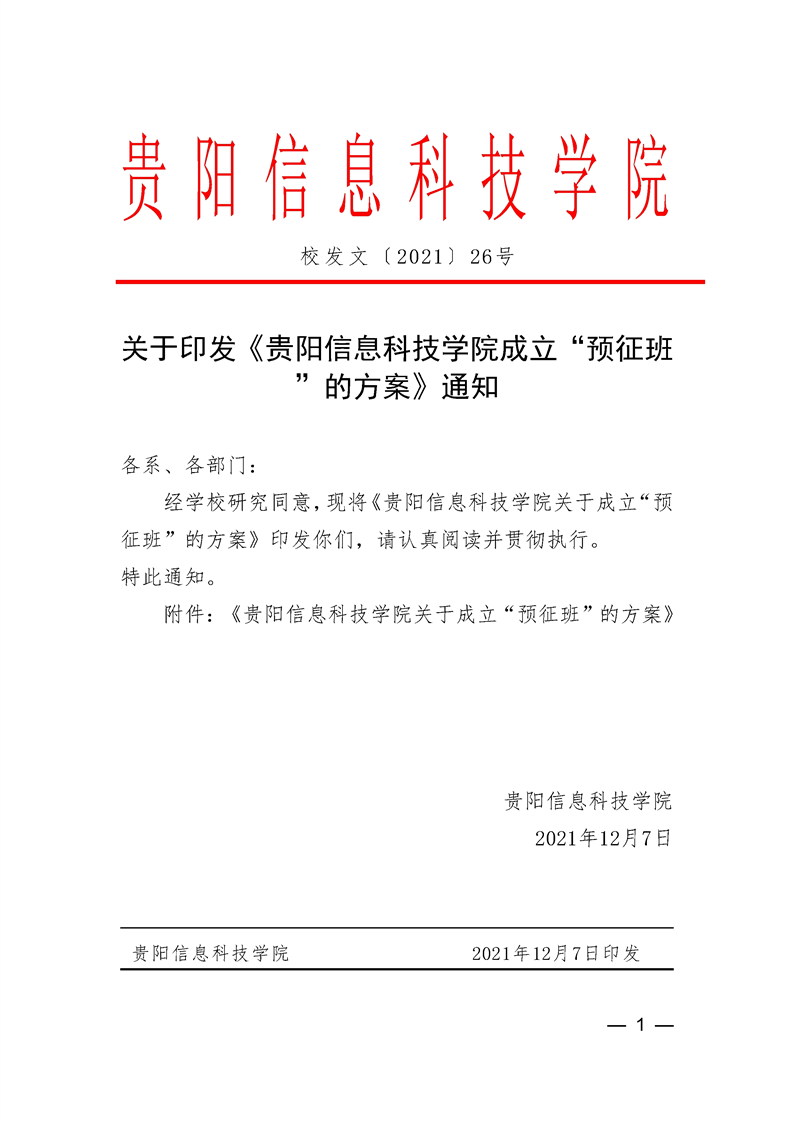 关于印发《贵阳信息科技学应征入伍优待优抚办法》的通知