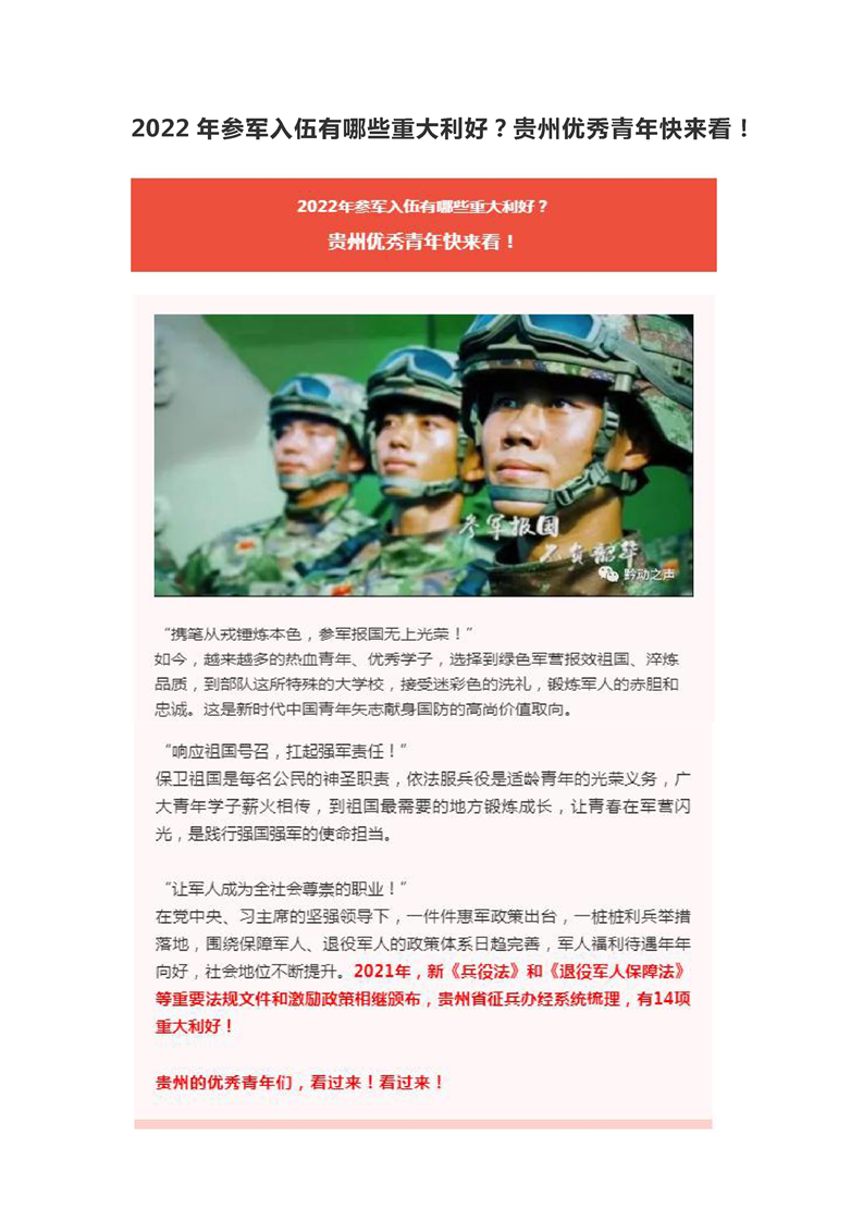 2022 年参军入伍有哪些重大利好?贵州优秀青年快来看!